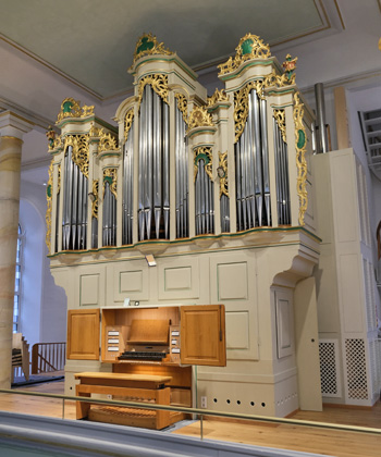Im vorhandenen Steinmeyergehäuse entsteht ein Orgelneubau auf mechanischer Kegellade einschließlich Physharmonika. Die aus dem Jahr 1867 mit dem Bau errichtete Orgel erfuhr mehrere gravierende Umbauten, so dass eine grundlegende Lösung nun Gehäuse, einige erhaltene Originalpfeifen und zuletzt den Kirchenraum wieder zu einer Einheit zusammenführen werden.