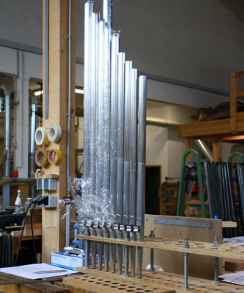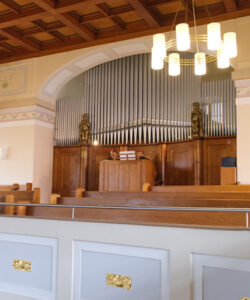 In der ersten Jahreshälfte 2020 haben wir die Weigle-Orgel von 1912 restauriert. Neben den umfangreichen Restaurierungsmaßnahmen zur Windanlage, Pneumatik und den weigle'schen Membranladen konnten wir die Disposition zurückführen. Dank eingelagerter Pfeifenfragmente auf dem Dachboden war eine authetische Rekonstruktion der Pfeifenbestände möglich. Als kleiner Zusatz erhielt die Orgel noch eine ergänzende Octavkoppel für das Hauptwerk.
