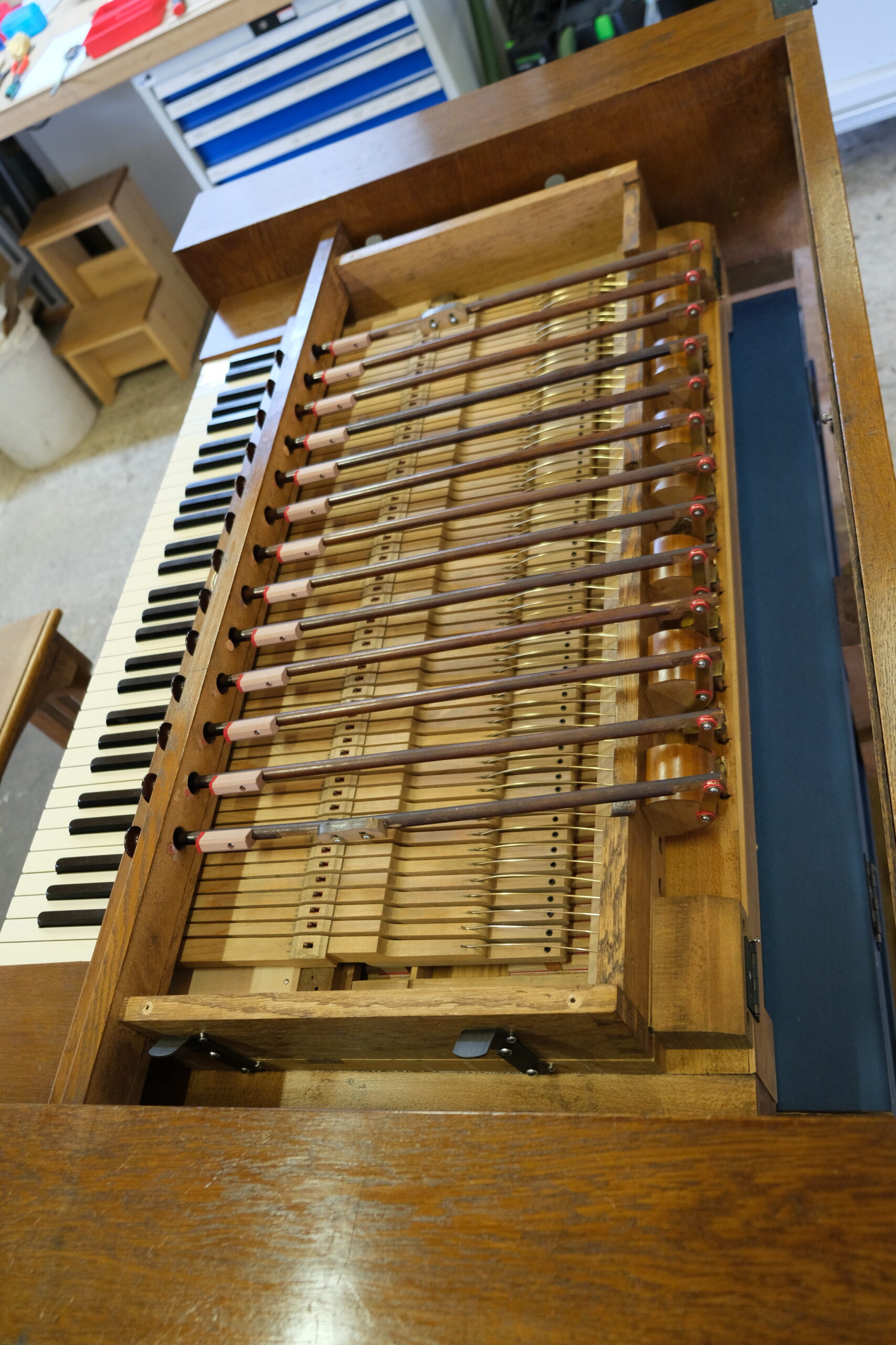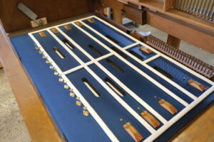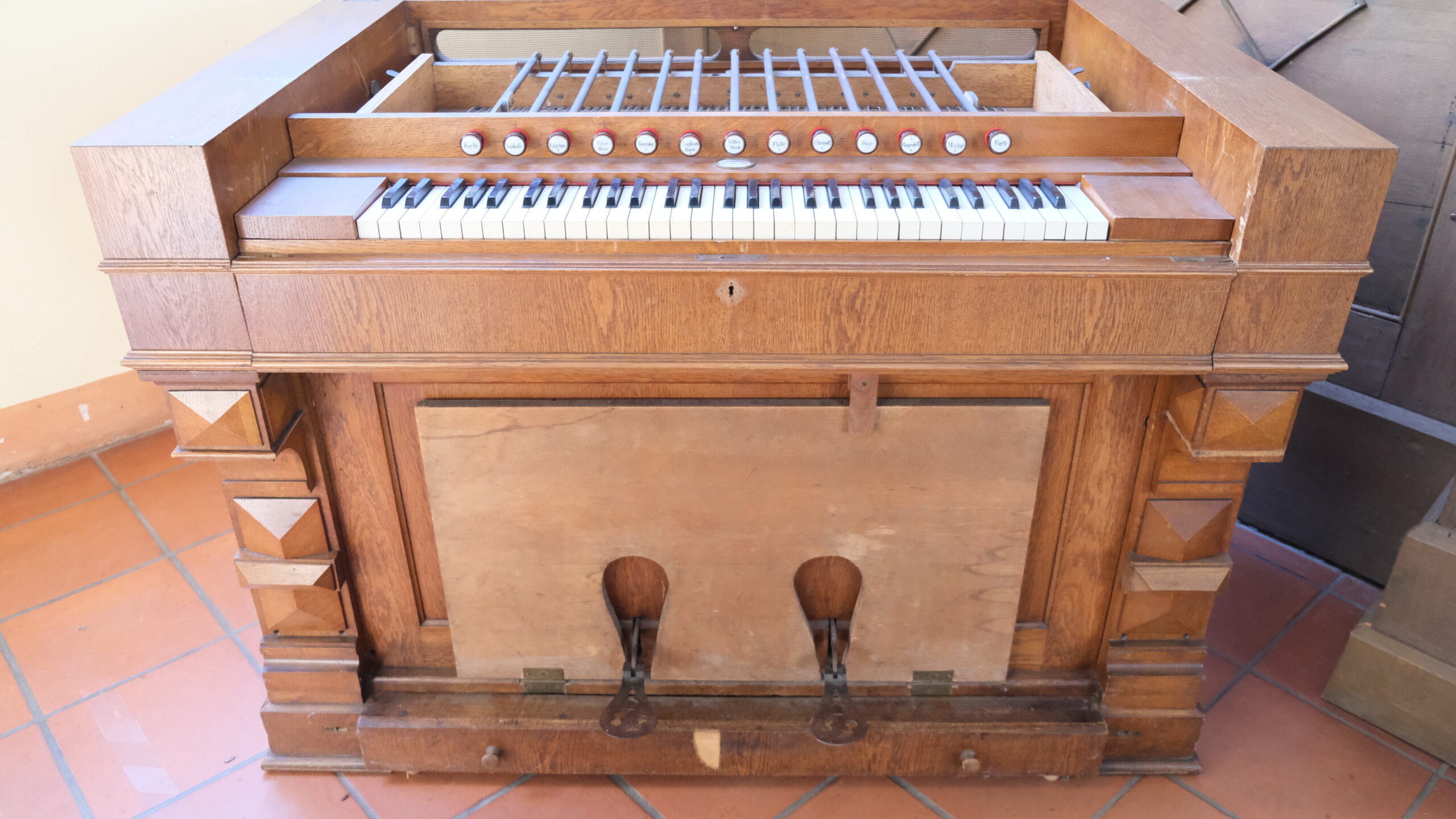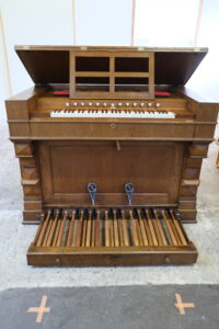 Es stand lange Zeit unspielbar in der Ortskirche. Dank einer großartigen Initiative aus der Gemeinde konnte es 2026 umfassend restauriert werden. Als eine kleine Besonderheit des Harmoniumbaus wurde anstatt einer oft üblichen 5. Schwebungsreihe eine sogenannt Mixtur. Jener Zug aktiviert die 4´-Reihe und dazu eine eigenständige Quintreihe 2 2/3´.