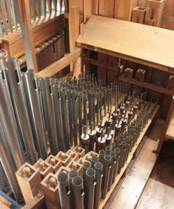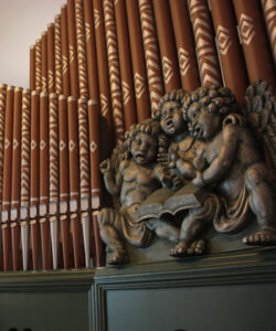 Wir haben das Instrument 2020 umfassend restauriert. Sämtliche pneumatischen Baugruppen wie Spieltisch, Windladen (bei diesem Instrument mit der Besonderheit von ‚Hängebälgen‘, einem Vorläufer der Taschenladen), einschließlich Windanlage und Pfeifenwerk wurden einer Restaurierung und Konservierung unterzogen. Im November konnten wir das kleine Technik- und Klangwunder wieder der Kirchengemeinde übergeben.