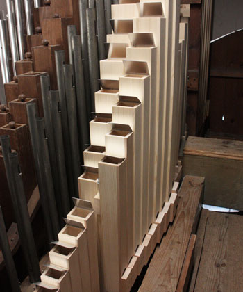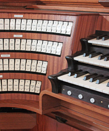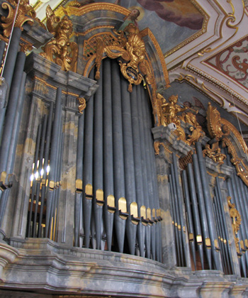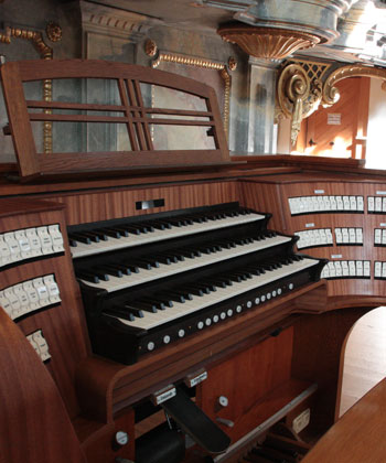An der Orgel galt es eine Zeitspanne von 1865 (E.F.Walcker, viel Substanz erhalten) bis 1940 (Zeilhuber, dreimanualige Neuschaffung der Walcker-Anlage) zu einem neuen Großinstrument zu vereinen. Der neobarocke Prospekt liefert uns dazu die große Fassade, hinter historisches, jüngeres und auch neues Pfeifenwerk nun wieder in den weitläufigen Kirchenraum strömen. Neben den klanglichen Arbeiten waren eine neue Windanlage, Orgelelektrik und ein dynamisch verbesserter Schwellkasten wichtige Etappen. Der Zentralspieltisch wurde im Gehäuse von Zeilhuber belassen, die Innenaustattung in zeittypischem Stil der 1940- Jahre auf neue Technik unserer Tage ersetzt.