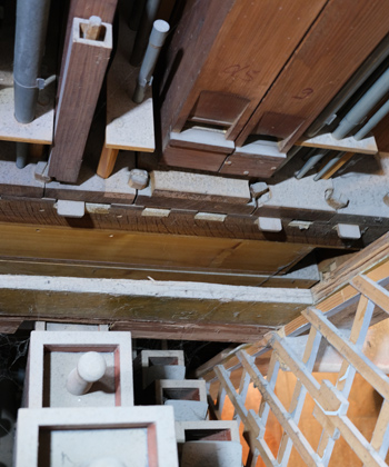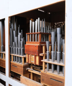 Für die neue seitlichen Pedaltürme sägte man kurzerhand das barocke Gehäuse seitlich einfach in kleine Stücke. Wir haben für den komplexen Fall ein Konzept erarbeitet, wie man die gewachsene Geschichte weiter erhalten kann. Eine Rückführung auf den kleinen Ursprungszustand erschien in der großen Kirche nicht klug, daher werden wir Altes und Neues so entflechten, dass Stimmung, Klang und Technik eine bessere Einheit bilden.