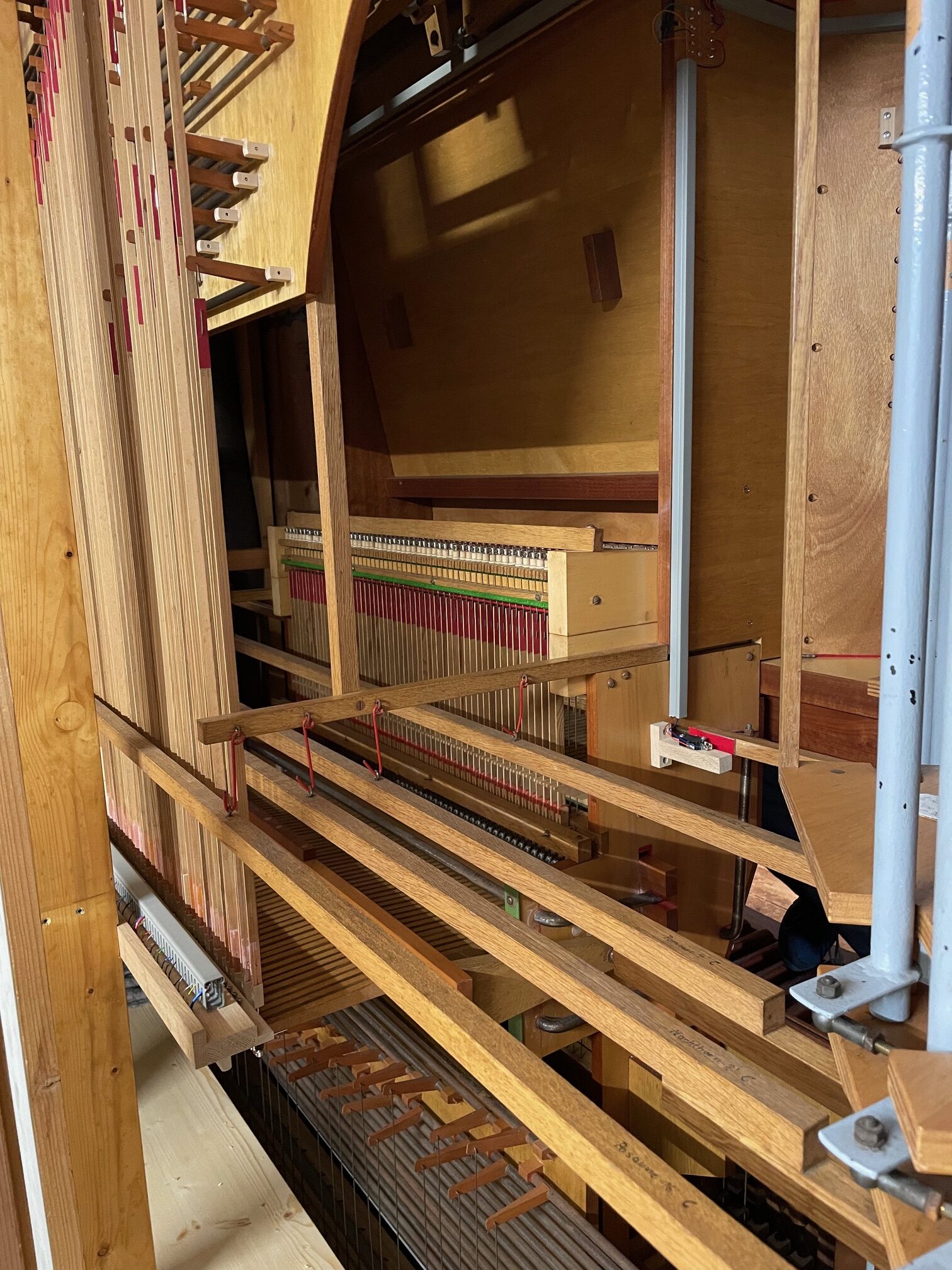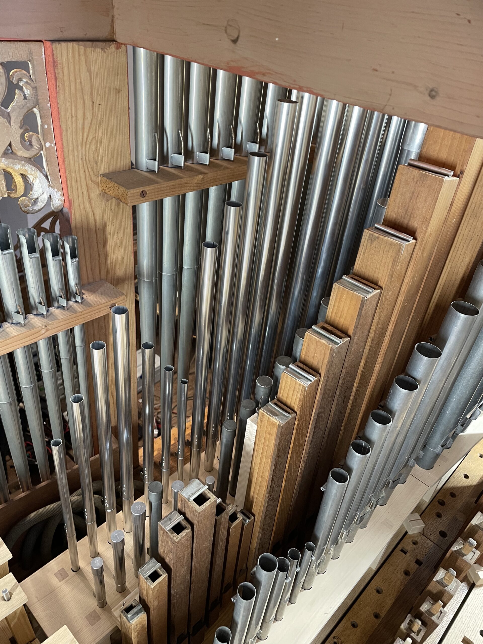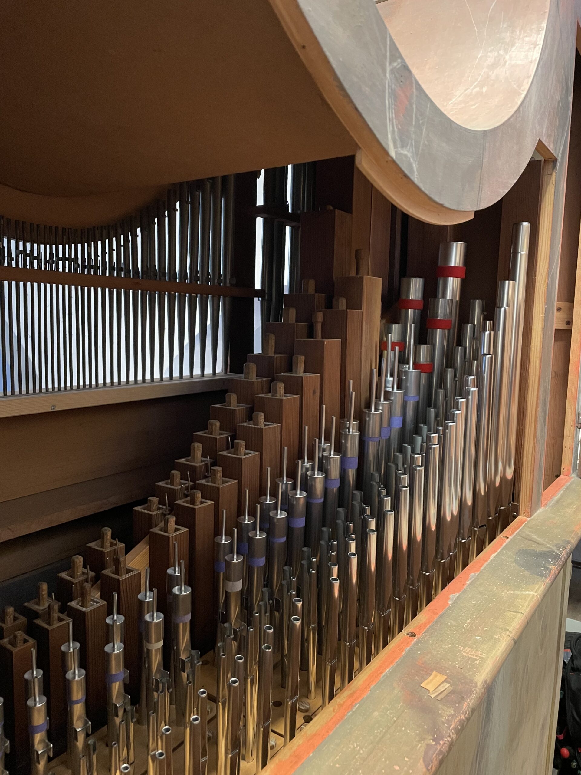 Aktuell 2026 haben wir die technischen Umbaumaßnahmen aus dem Jahr 2025 abgeschlossen. Derzeit laufen die Intonationsarbeiten, sofern uns die kalten Temperaturen in der nicht beheizbaren Umgebung einen zielgerichteten Arbeitsfortschritt ermöglichen.