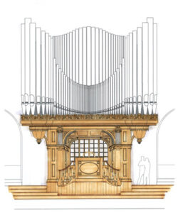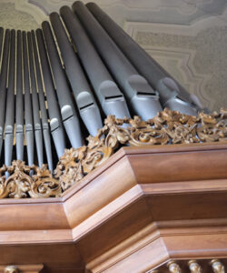 Neben Kilometern an Bleirohr bauen wir dazu wieder einen neuen vollpneumatischen Spieltisch Standort 1903 vor der Orgel auf einem kleinen Podest. Aufgrund unserer großen Auslastung bleibt bis zum Beginn unserer Arbeiten Zeit. Sie wird dazu verwendet, um Lösungskonzepte für gravierende statische Probleme der Orgelplattform zu erarbeiten.