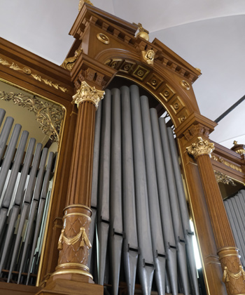 Seitenflügeln für ein Zusatzwerk haben das von Voit solide durchgeplante Instrument ab den 1960-Jahren unvorteilhaft verändert.