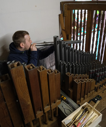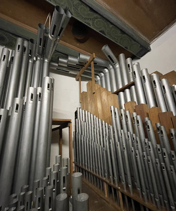 2021 haben wir uns von Sommer bis zum Spätjahr nun der Orgel selbst angenommen. Hunderte Keilbälgchen, große Bälge, Ventile und Windladen waren stark verschlissen und bedurften einer umfassenden Restaurierung.