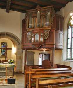 Die barocke Fassade der vorherigen Orgel wurde dazu in einen Jugenstilumbau nebst kleinen Pfeifenerker im unteren Feld integriert. Zeittypisch kommt das Instrument mit einer displinierten Registerzahl aus. Mittels Querkoppeln lässt sich aber in der Kirche ein erstaunlicher Klangfundus zaubern.