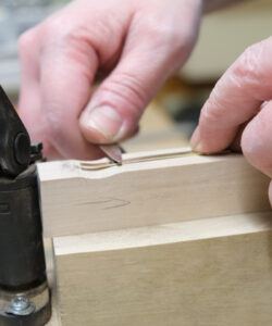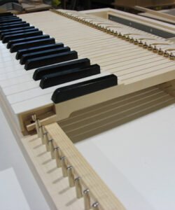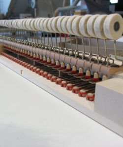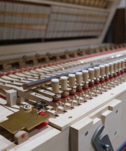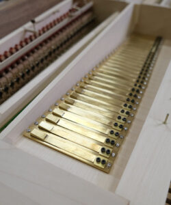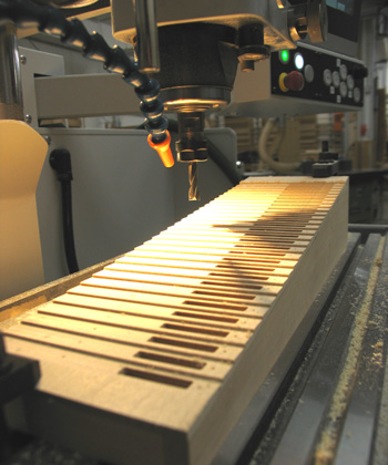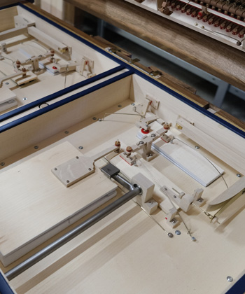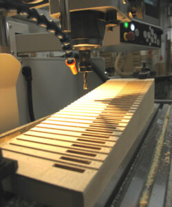 Unter dem Arbeitstitel ‚Harmoni(um)sche Versuche‘ sollte diese umfassende Wissen wieder zurückgeholt werden. Wir haben viele Schriften und Aufsätze zu dieses Instrument. Was aber das fachliche und buchstäblich handwerkliche Wissen in den tiefen Ebenen der Baukunst betrifft, sind keine Spuren hinterlassen worden. Mit unserer guten Ausstattung an digital verknüpften CNC- und Werkzeugfräsmaschinen im eigenen Haus war der Ansatz geboren, sich in dieses Thema wieder einzuarbeiten. Moderne Technik schafft kein Musikinstrument, springt aber in den Teil der hochkomplexen Serientechnik und Wiederholgenauigkeit. Explizit bei Grundbauteilen der durchschlagenden Zungen.