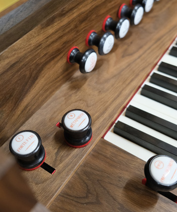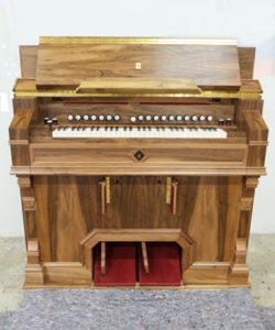 Stilmerkmale des Kunstharmoniums sind: Die Teilung der Bass- und Diskantseite mittels einer getrennt agierende Windführung (Doppelexpression), zusätzliche Spiele wie ein enger 16´ & 32´. Ausschließlich doppelreihig bestückte Schwebungen von 2´ bis 16´. Diverse den Klang modulierende Einrichtungen auf die hinteren Spiele: pneumatisches Forte, Methaphone.