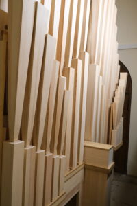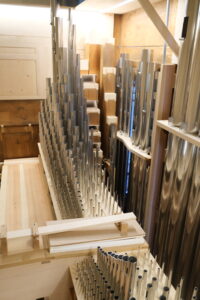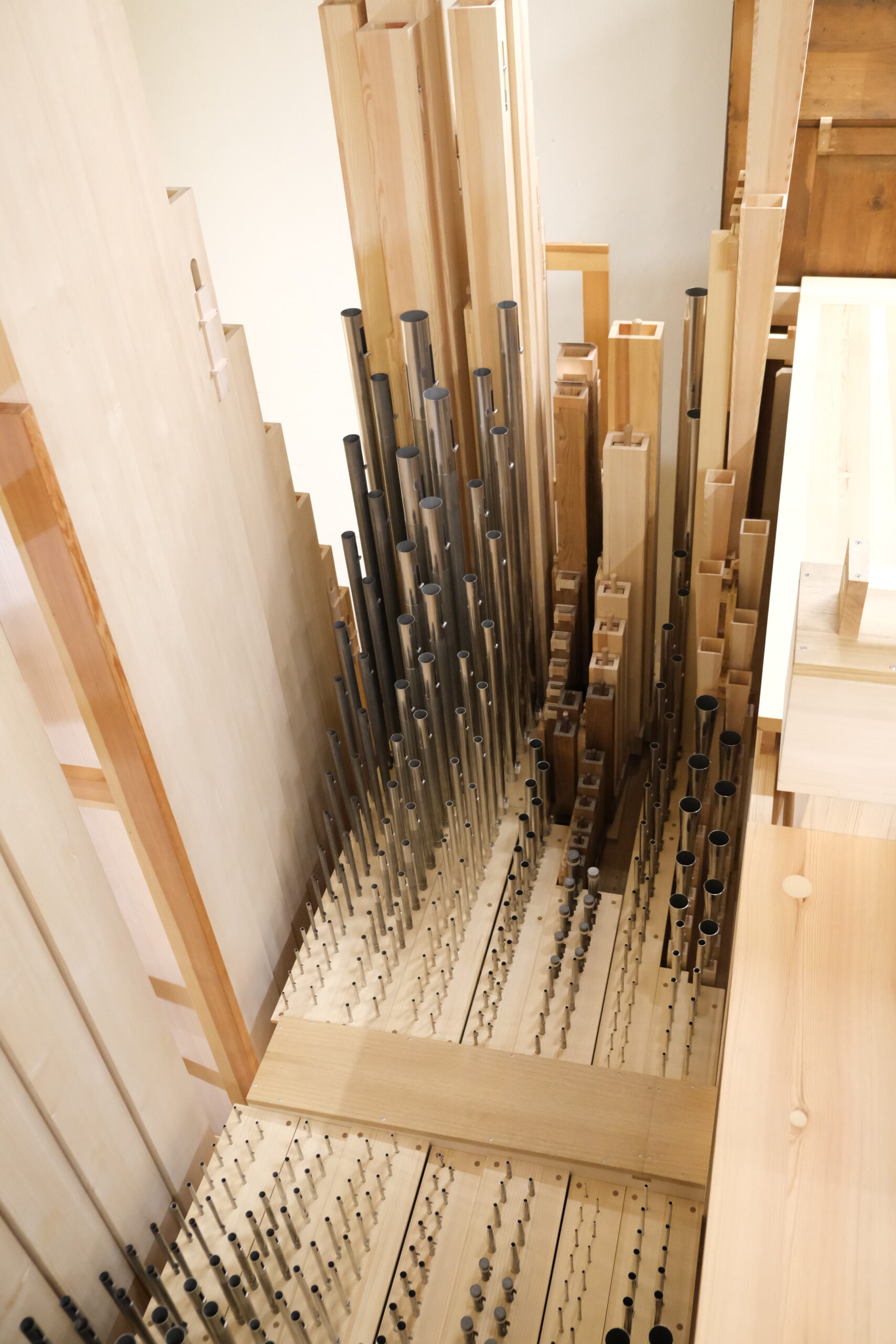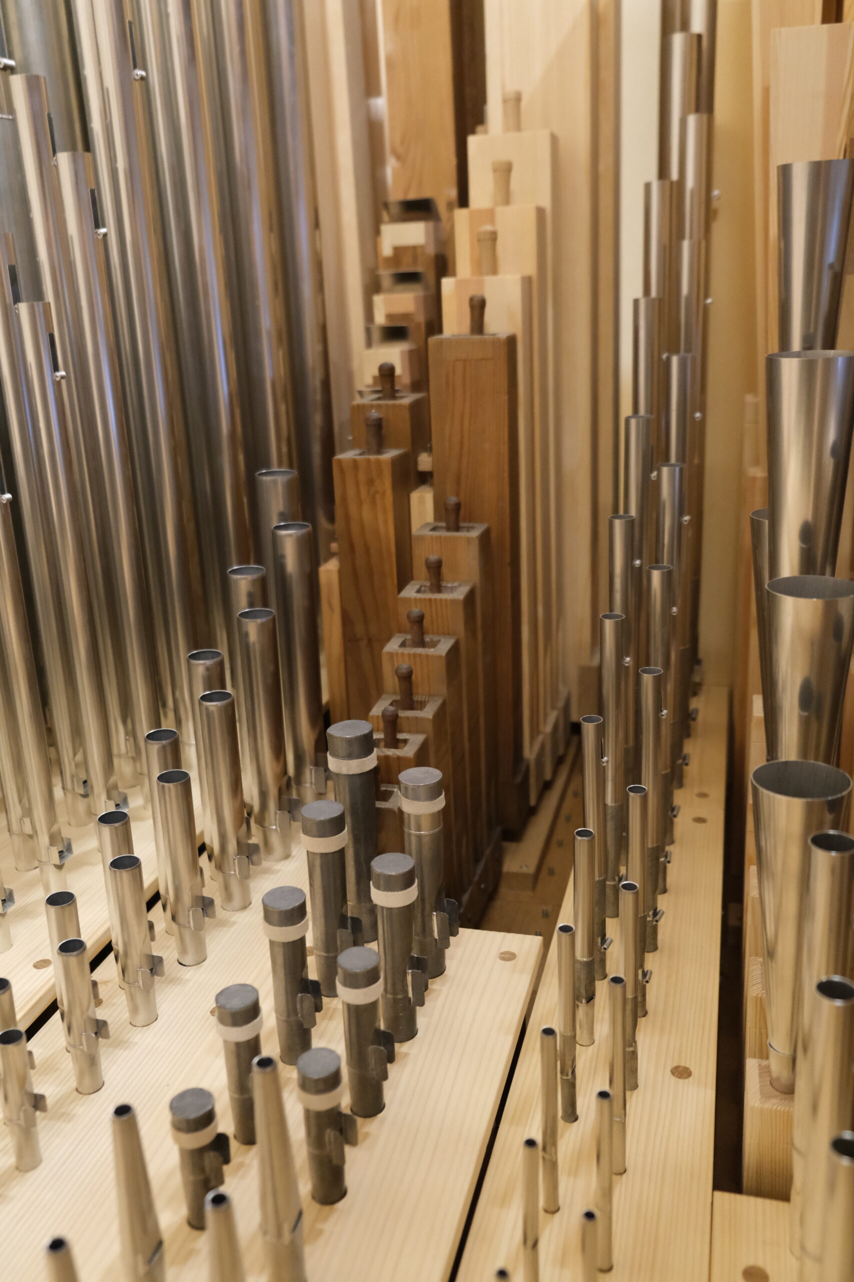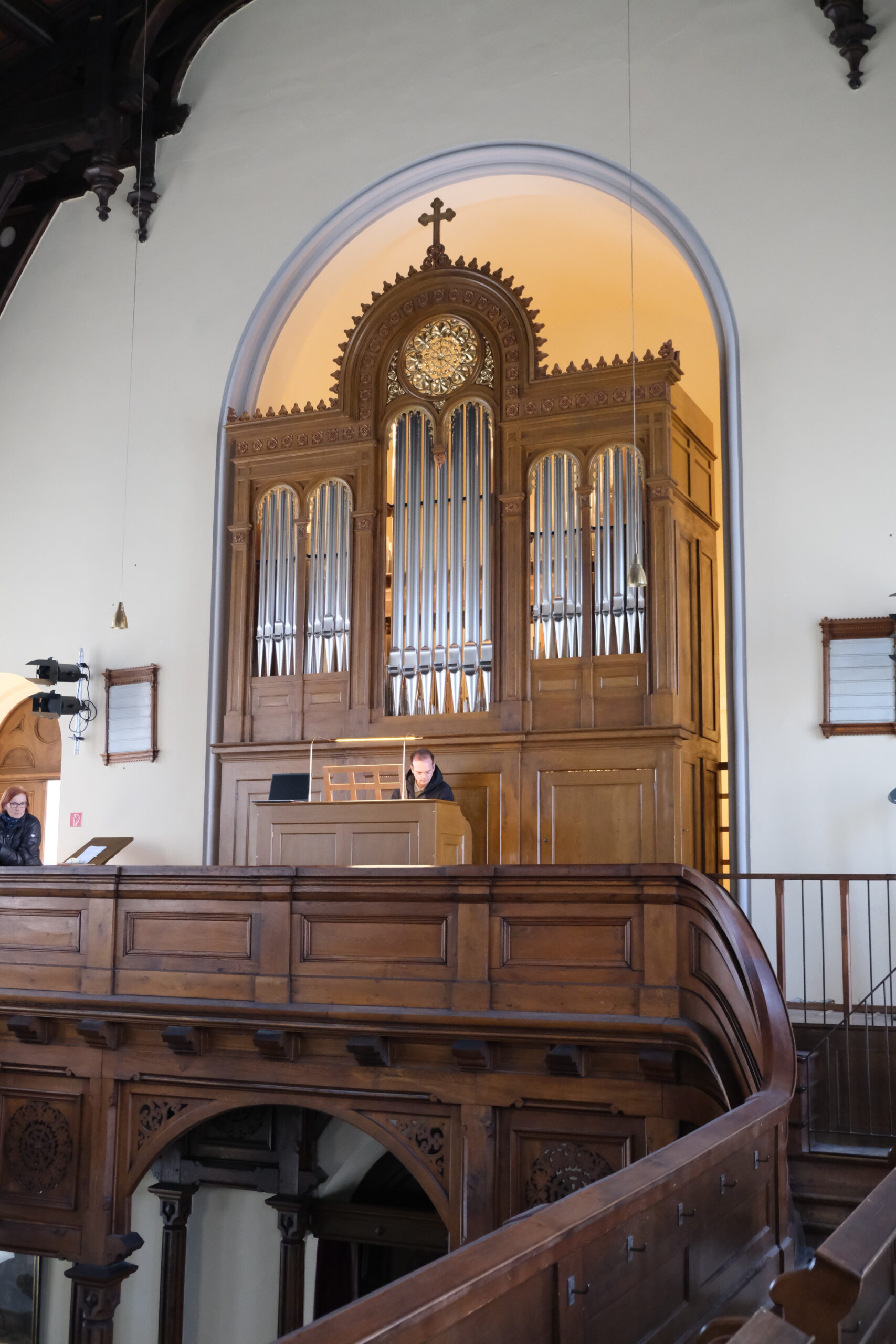 Unser eingereichtes Konzept führt die im Ursprung aus Kostengründen relativ sparsam gebaute Orgel von Steinmeyer weiter. Auf bewusst in den Eigenschaften der Registerkanzelle gedachten Klangeigenschaften wurde das Konzept etwas vergrößert. Dafür wurde auch ein drittes Manual mit Physharmonika 16´ und 8´ und zwei Labialregister für die bewusst „schwellerlose“ aber trotzdem hochdynamische Orgel hinzugefügt. Ergänzt durch pneumatische Traktursysteme, welche synchron zur Mechanik in der Orgel arbeiten. Sie ermöglichen Register-Transmissionslösungen für das dritte Manual und das Pedal. Die Sichtung des vom letzten Umbau erhaltenen Pfeifenbestandes gab uns die klangliche Kernaussage vor. Erfreulich viele Originalpfeifen von Steinmeyer aus dem Jahr 1867 waren zwar 1979 unvorteilhaft verändert worden, konnten aber mit handwerklichem Einsatz und Gespür in den Neubau auf Registerkanzellen übernommen werden. Unser Konzept gründet somit auf den Klangauffassungen von Steinmeyer und führt mit eigenen Ideen in das Jahr 2026.