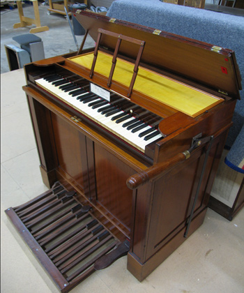 Als Vorläufer des Harmoniums wurde dieses Instrument 1841 gebaut. Ungewöhnlich ist die Ergänzung eines Pedals.